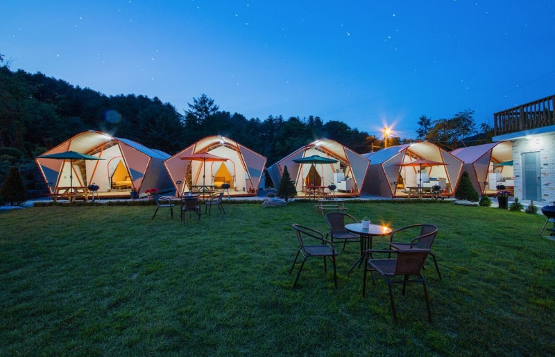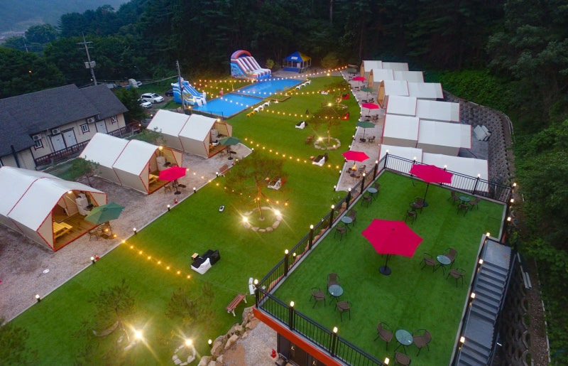 포천에 자리한 캠핑장이에요. 객실은 글램핑동과 카라반, 캠핑 사이트로 나뉘어요. 랜덤 배정 되는 글램핑은 원룸형으로 침실과 주방, 욕실로 구성됐어요. 최대 입실 인원은 2인입니다. 연인에게 적합해요. 데크가 설치된 캠핑 사이트는 여유로운 크기로, 가족 여행자에게 인기가 높아요. 차박하기에도 딱이에요.
