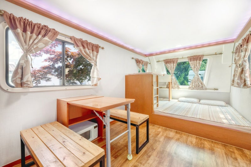 가평의 푸른 산과 맑은 물을 동시에 만날 수 있는 캠핑장이에요. 야간 조명으로 밤에도 분위기가 낭만적입니다. 숙소에는 총 10개의 카라반 객실이 마련돼 있습니다. 전망은 물론, 크기와 구조, 디자인이 각각 달라요. 커플, 가족, 친구 등 여행자 타입과 취향에 따라 고르면 돼요.