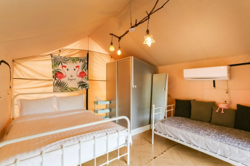 가평에서 글램핑을 즐기고 싶다면, 라플로레스타는 어떠세요? 미세먼지 걱정 없는 청정 숲 한가운데 위치했어요. 일반 펜션 룸과 함께, 총 6개의 글램핑 객실을 보유 중이에요. 객실 안에는 퀸과 싱글 베드 1개씩 구비해 놔, 연인과 가족 모두 수용 가능해요. 친구들끼리 와도 더할 나위 없이 좋고요.