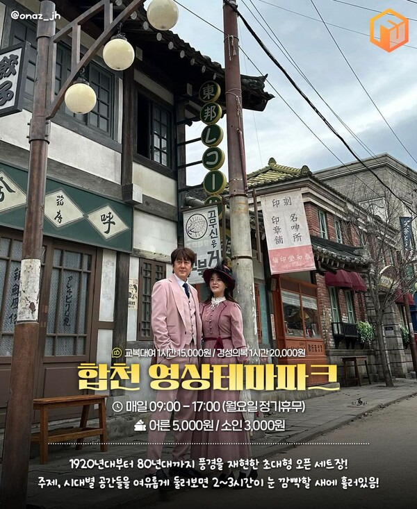 합천 영상테마파크는 1920년대부터 1980년대까지의 시대상이 모두 생생하게 재현되어 있는 대규모 야외 세트장입니다. 1930~40년대 경성, 1950년대 평양, 1960~70년대 서울 동네 등 공간이 7,500평의 대지를 풍성하게 채우고 있는데요. 한국 근현대를 배경으로 한 수많은 영화와 드라마들의 촬영지로도 유명하죠.