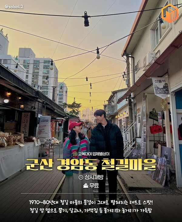 군산의 대표적인 관광지로 유명한 경암동 철길마을은 일제강점기인 1944년, 철도 주변에 사람들이 모여 살며 형성된 동네입니다. 현재는 1970~80년대 풍경이 고스란히 남아있어 옛 추억을 회상하기 좋은 레트로 여행지로 수많은 나들이객들이 찾는 곳이죠.