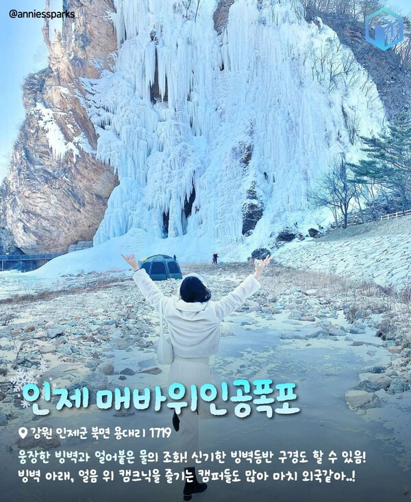 오늘은 이번 겨울이 끝나기 전에 꼭 가봐야 할 국내 얼음벽 명소 9곳을 소개합니다. 각 얼음벽 포토존과 주변 편의시설, 여행팁을 소개해드리니 오늘의 글을 참고하시어 신비로운 얼음벽과 함께 인생샷을 찍어보세요.