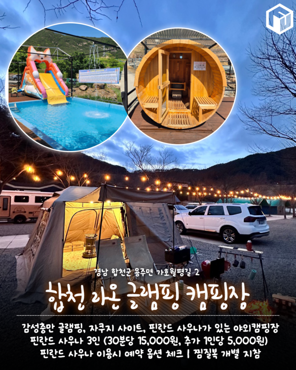 글램핑과 함께 핀란드 사우나를 즐길 수 있는 원주 라하글램핑장입니다. 강원도 원주시 소초면에 위치한 라하글램핑은 치악산뷰의 글램핑장으로 숙소 깨끗한 시설과 특히 밤에는 미니 알전구가 켜저 낭만적인 캠핑을 즐길 수 있는 곳인데요.