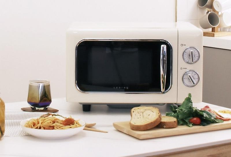 쿠잉 레트로 전자레인지는 레트로 감성의, 파스텔톤 색감의 디자인을 가진 전자레인지다. 세련되고 개성 있는 컬러의 제품을 찾는 이들에게 추천할만하다. 퓨 어크림과 파스텔민트, 스카이블루의 세 가지 색상을 선택할 수 있다. 출력은 6단계로 조절할 수 있으며, 내부 조리 공간의 용량은 20L다. 조리실 내부에는 오 염 및 변색을 방지하기 위한 클린 코팅이 적용돼 있 다. 본 제품의 공식몰 판매가는 79,000원이다.