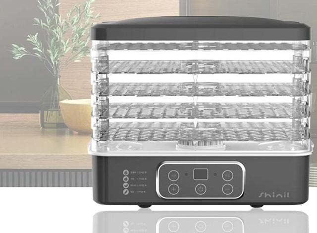 신일전자의 식품건조기는 5단의 트레이를 갖춘 제품 이다. 내부 공간은 트레이의 높이 조절을 통해 유동적 으로 조절할 수 있으며, 조작은 스마트한 버튼 방식을 채택해 직관적으로 이용할 수 있다. 타이머는 1시간 부터 최장 72시간까지 설정이 가능하다. 대류 현상 히팅 시스템을 적용해, 위아래로 골고루 식재료를 건 조시킬 수 있다. 내부 온도는 최고 70°C까지 설정이 가능하다. 본 제품의 온라인 최저가는 58,830원으로 확인된다.