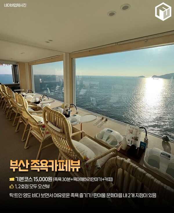 부산 영도 흰여울문화마을은 해변가에 옹기종기 모여있는 가정집들과 새하얗게 칠해진 벽 등 이국적인 풍경이 펼쳐져 부산 여행의 필수 코스로 손꼽힙니다. 흰여울문화마을 내에는 영도 앞바다가 통창을 가득 채워 펼쳐지는 오션뷰 족욕카페가 2곳이나 운영되고 있는데요.