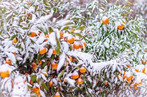제주 하면 생각나는 대표적인 풍경 중 하나가 바로 귤밭이죠. 특히 눈이 내린 귤밭은 다른 계절에는 볼 수 없는 독특한 풍경을 자아내니 사진으로 남기기에도 좋습니다.