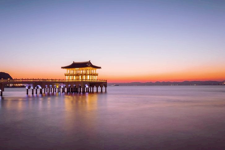 영일대에는 해상건축물이 하나 있습니다. 바다 위에 자리 잡은 영일대 정자에 가면 바다한가운데 있는 느낌이 듭니다. 겨울의 차가운 바람과 함께 바라보는 정자 풍경은 고즈넉하면서도 인상적이랍니다.