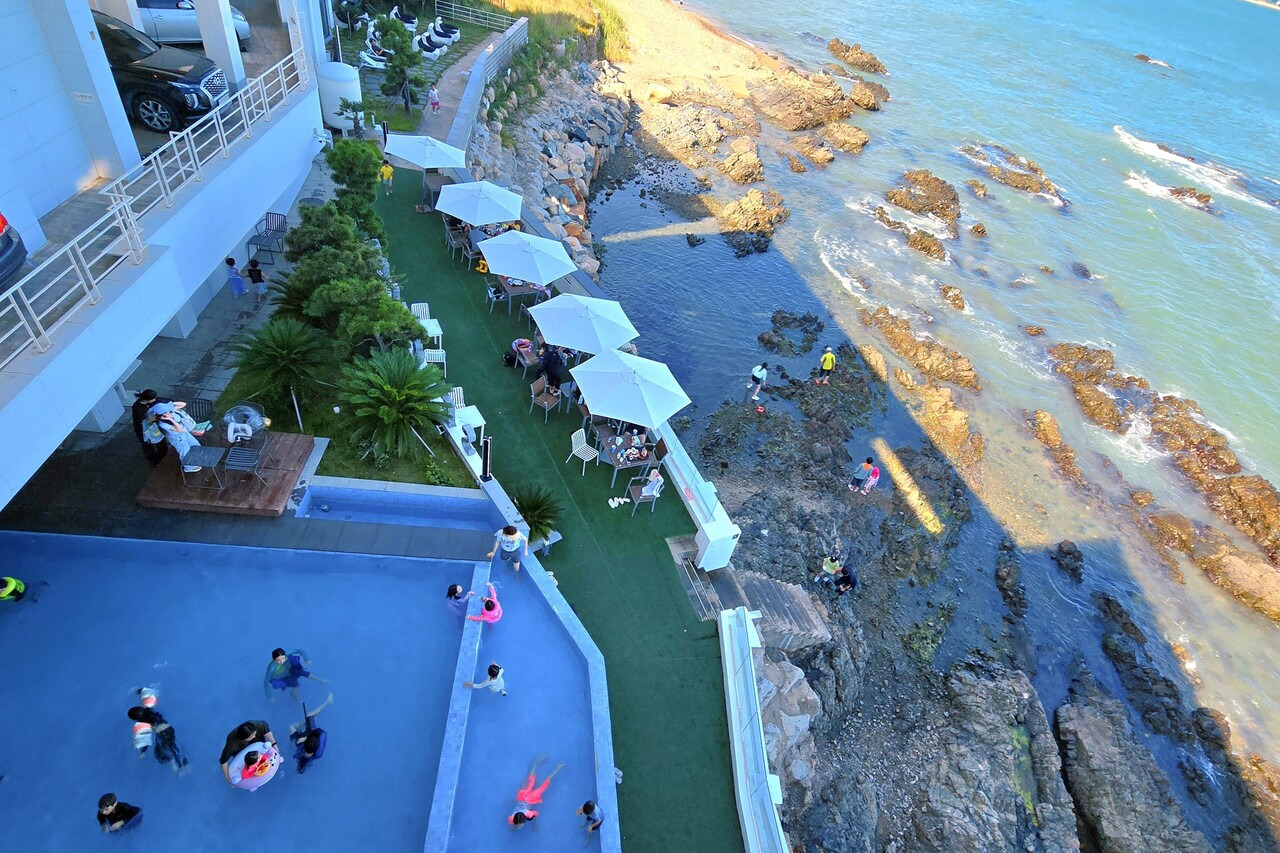 5층 루프탑에서는 탁 트인 하늘과 동해의 푸르름을 동시에 감상할 수 있어 인스타 사진 남기기도 좋답니다. 같은 건물 내에 풀빌라 펜션과 수영장도 이용할 수 있는데요. 여름휴가 코스로 부산을 온다면, 씨앤트리 카페에 방문해 보는 것도 좋은 선택이 될 것입니다.