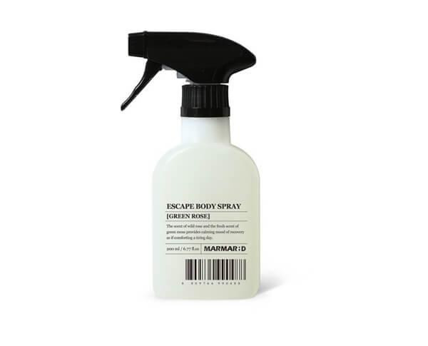 마르마르디는 생활 속 우리가 마주하는 많은 제품들 이 가진 기능, 즉 본질에 아름다움과 유니크함을 더하 여 더욱 가치 있는 제품을 만드는 라이프 스타일 코스 메틱 브랜드다. 이스케이프 바디스프레이는 각각다 른 힐링의 무드를 선사하는 바디 스프레이다. 당신이 오늘 느끼고 싶은 감정을 담아 완벽한 하루의 시작과 끝을 선물한다. 그린로즈향의 경우, 패출리의 젖은 향 으로 시작된 싱싱한 들장미의 향으로 고급스러움을뽐낸다.