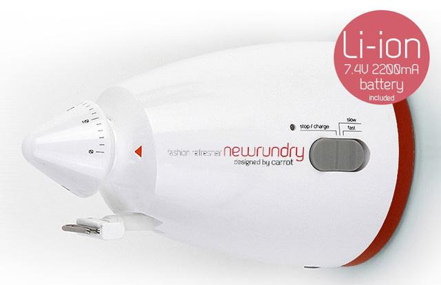 런드리 의류관리기는 어댑터 케이블을 사용하지 않아 도 되는 제품이다. 대용량 배터리를 탑재하고 있어, 완충 시에는 최장 6시간을 연속으로 사용할 수 있는 충전식 의류관리기다. 의류를 건 옷걸이를 이 제품에 걸어두면 빠르게 이를 흔들어 건조시키는 형태의 제 품이다. 고정시켜서 사용할 수 있는 스테인리스 도어 브라켓을 본품과 함께 제공한다. 런드리 공식 홈페이 지에서 108,000원의 판매가로 판매하고 있다.