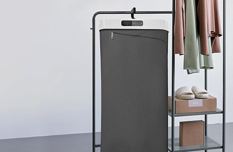 위드홈의 의류관리기는 스마트 행어와 진동 케어로 의류를 관리할 수 있는 제품이다. 프리미엄 패브릭 재 질의 제품으로, 접어서 휴대할 수 있으며 거치형으로 도 튼튼하게 사용할 수 있는 제품이다. 스마트 행어는 바람만으로는 털기 힘든 미세한 먼지를 털어내기 위 해 분당 최대 140회 진동한다. 살균을 위해 UVC-LE
