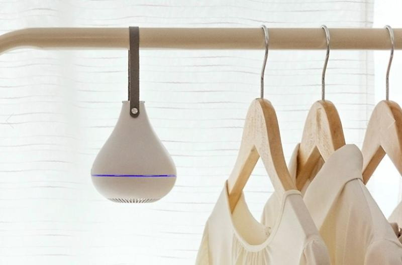 에어베리 스마트 의류관리기도 옷과 함께 걸어만 두 면 되는 제품이다. 옷장 속에 옷과 함께 걸어두면 스 마트 에어 서큘레이션 방식으로 한 시간에 한 번씩 저 소음 팬으로 옷장 내부 공기를 순환시킨다. 내부에는 스위스 지보단 오일을 사용한 향기 블럭'을 탑재하고 있어, 옷장 속을 향기로 가득 채울 수 있는 제품이다.