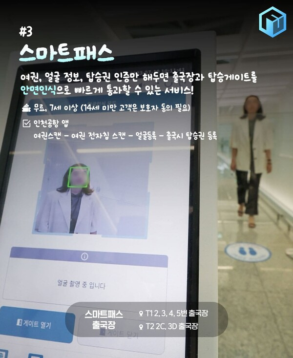 스마트패스는 인천공항 출국장을 얼굴인식으로 간편하고 빠르게 통과할 수 있는 인천공항 꿀팁입니다. 인천공항 어플에서 7세 이상부터 무료로 등록이 가능합니다. (14세 미만 고객은 보호자 동의 필요)