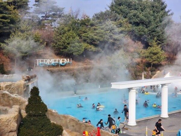 600년 역사를 자랑하는 덕산 스플라스 리솜은 49.6도의 온천수 온도를 자랑하는 복합 스파 리조트입니다. 15개의 야외 노천탕을 포함한 모든 물놀이 시설이 온천수로 운영되고 있어요.