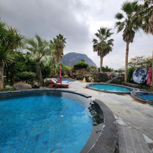 산방산을 배경으로 온천을 즐길 수 있어 제주도만의 독특한 경관을 감상할 수 있습니다. 실내온천과 야외 노천탕, 찜질방 시설을 모두 갖추고 있어 가족 단위 방문객들이 하루 종일 즐길 수 있는 공간이죠.