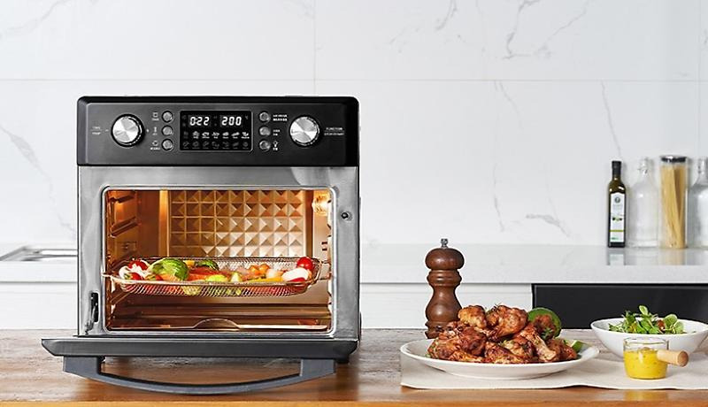 오븐이다. 900W에서 2500W까지 상황에 따라 다양 하게 출력이 조절되는 전기오븐으로, 기름 없이 튀기 는 에어프라이 기능도 갖추고 있다. 간편 조리 30초 부터 최대 95분까지 원하는 조리 시간을 선택할 수 있으며, 버튼을 돌려서 51 가지의 자동 요리 프로그램 을 고를 수도 있다.