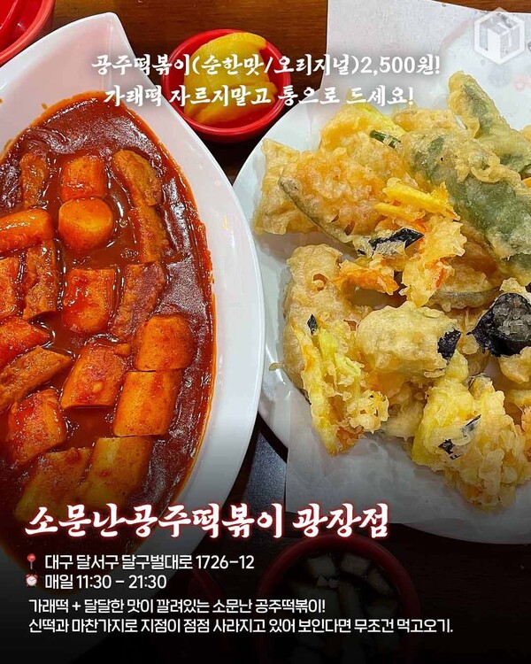 위에서 소개한 신떡 떡볶이처럼, 소문난공주떡볶이 역시 점점 지점이 사라지고 있는데요. 소문난공주떡볶이가 사라지기 전에 꼭 방문해서 대구만의 가래떡 떡볶이를 경험해보세요!