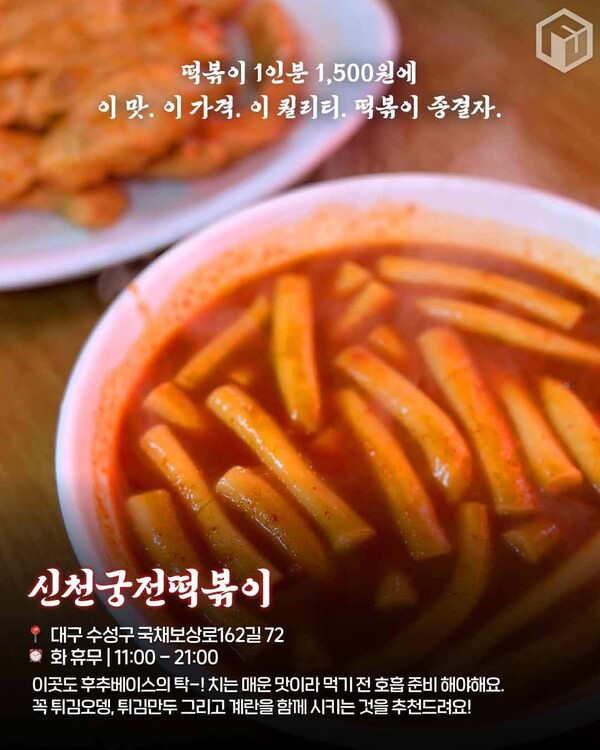 묵직한 양념과 쫀득한 떡의 조합이 완벽한 이곳은 대구 현지인들에게도 꾸준히 사랑받고 있는 찐맛집입니다!