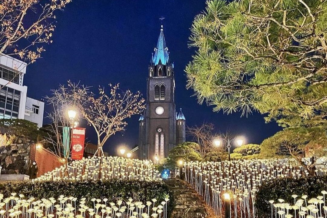 명동대성당은 마치 크리스마스를 위해 존재하는 듯한 고즈넉하고 이국적인 성당으로, 주변 크리스마스 장식과 어우러져 한층 더 로맨틱한 분위기를 자아냅니다.