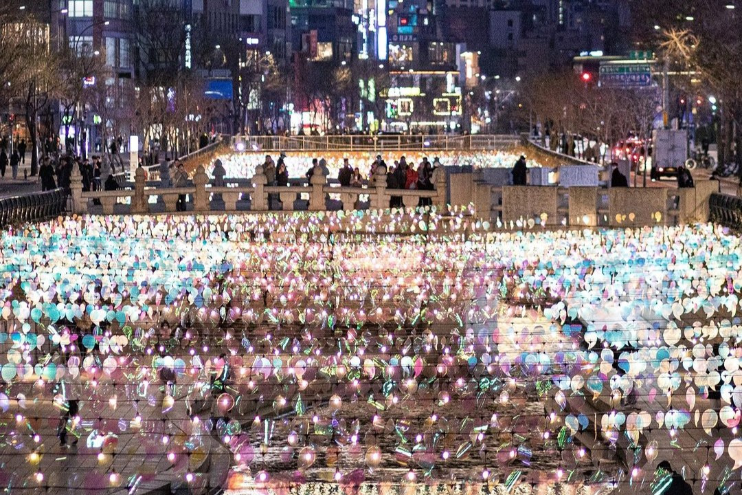광화문 마켓에서 즐거운 시간을 보냈다면 청계천에도 들러보세요. 올해도 어김없이 서울의 크리스마스를 장식하기위해 서울빛초롱축제가 개최되어 커플 데이트 코스로도 인기 만점인 장소랍니다.