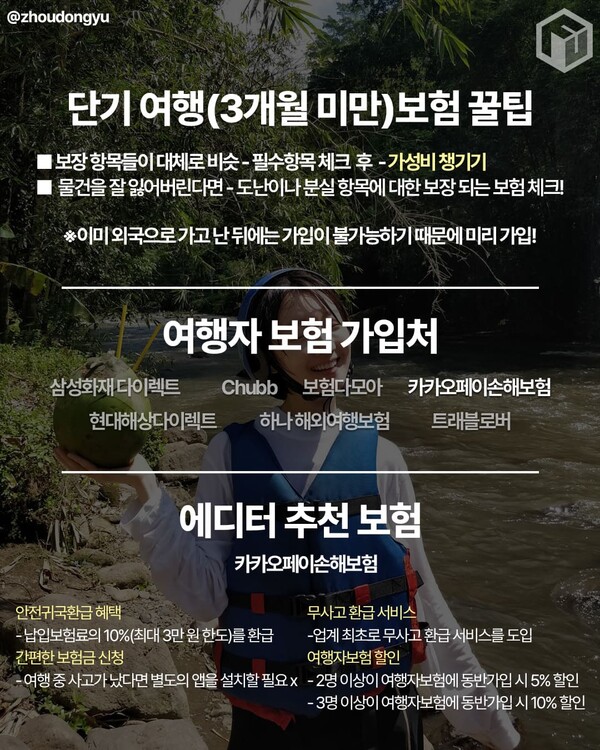 - 3명 이상이 여행자보험에 동반가입 시 10% 할인