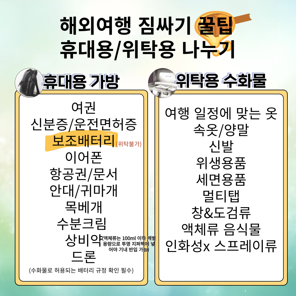 해외여행 준비, 어떤 것부터 챙겨야 할지 고민되시죠? 오늘은 여행을 떠나기 전에 꼭 챙겨야 할 ‘해외여행 준비물 체크리스트’와 짐 싸는 꿀팁을 총정리해서 소개해드릴게요!