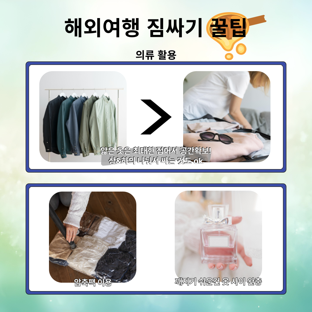 어떤 물건을 어디에 배치할지, 가방 속 공간을 최대한 활용하는 팁까지! 짐을 더 똑똑하게 싸서, 여행이 더욱 편안하게 진행될 수 있도록 도와드릴게요.