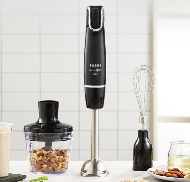 도 많은 추천을 받는 제품으로 꼽힌다. 1000W의 강 력한 모터와 테팔 파워엘릭스 티타늄 4중 칼날을 탑 재한 제품으로, 식재료를 부드럽고 균일하게 블렌딩 할 수 있는 핸드블렌더다. 거품기, 계량컵, 다지기의