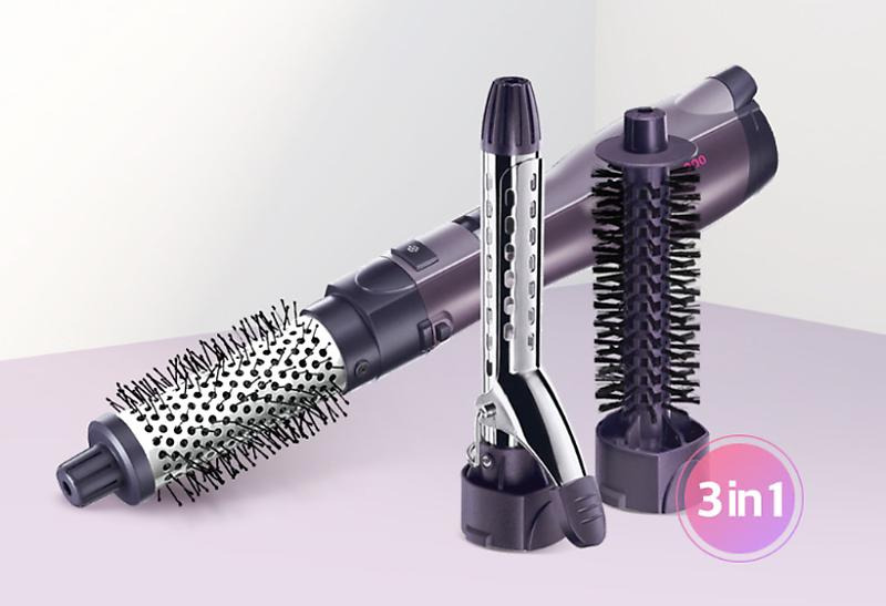비달사순의 에어 스타일러는 59,000원에 판매되는, 그래서 가성비의 측면에서 주목할만한 제품으로 꼽을 수 있다. 모발 사이로 바람을 불어 넣는 에어 라인이 적용돼, 빠른 건조와 스타일링 연출에 도움을 주는 제 품이다. 굵거나 얇은 컬을 살려줄 수 있는 타원 형태 의 배럴을 적용해, 다양한 느낌의 컬을 스타일링할 수 있다. 브러시는 핸들 양쪽의 버튼을 눌러 간편하게 교 체할 수 있다.