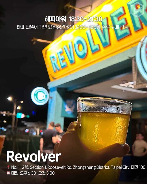 타이베이에서 맥주와 라이브 음악을 동시에 즐기고 싶다면? REVOLVER 바 & 라이브 하우스가 제격인데요. 다양한 수제 맥주 라인업과 합리적인 가격에 크래프트 맥주 애호가라면 취향에 맞는 한 잔을 찾는 재미가 있습니다.