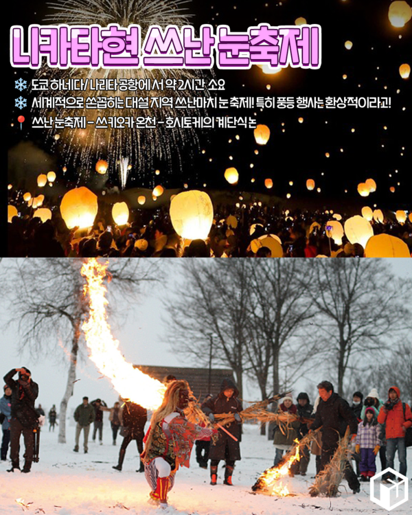 쓰난눈 축제를 즐기고 쓰키오차 온천에서 피로를 풀고 호시토케의 계단식 논에서 겨울 이색적인 풍경까지 감상하고 오기 좋은데요. 특히 일본 도쿄 하네다/ 나리타공항에서 대중교통으로 2시간 거리에 위치해 당일치기 여행으로도 추천드립니다.