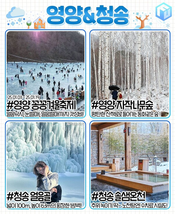 ✅ 영양 꽁꽁겨울축제 ✅ 영양 죽파리 자작나무숲 ✅ 청송 얼음골 ✅ 청송 솔샘온천