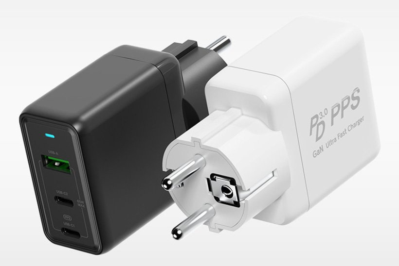 제품으로 제작돼, 별도의 변환 플러그가 필요하지 않은 제품이다. 콤팩트한 사이즈를 가지고 있어 휴대가 수월 하다. 세 개의 충전 포트를 갖추고 있으며, 고속충전은 최대 65W의 출력을 지원한다. 최신 GaN Fast 기술을 적용해, 동급 출력의 일반 충전기보다 30% 이상 부피 를 줄인 제품이다. 본 제품의 뷰씨 공식몰 판매가는 26,