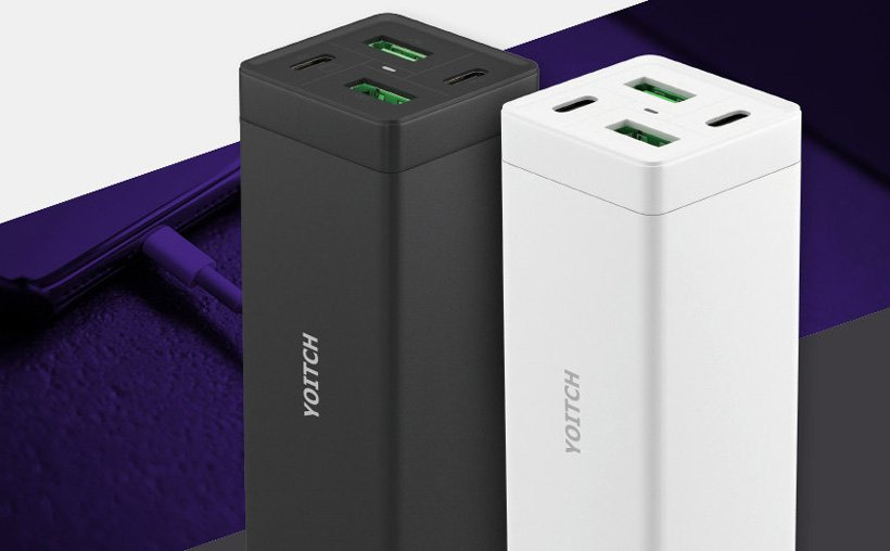 요이치 마빈 울트라 65W 멀티충전기는 네 개의 포트 를 갖추고 있다. 길쭉하고 네모난 특이한 모양의 바디 디자인을 가진 충전기로, 최대 출력은 83W를 지원한 다. 불연성 PC 소재로 제작해 열에 강하고 불에 타지 않아 안전하게 사용할 수 있으며, 별도의 어댑터 없이 AC 케이블을 연결하면 바로 사용할 수 있어 변압기가 없어도 활용하기 편하다. 요이치 공식몰에서 개당 34,