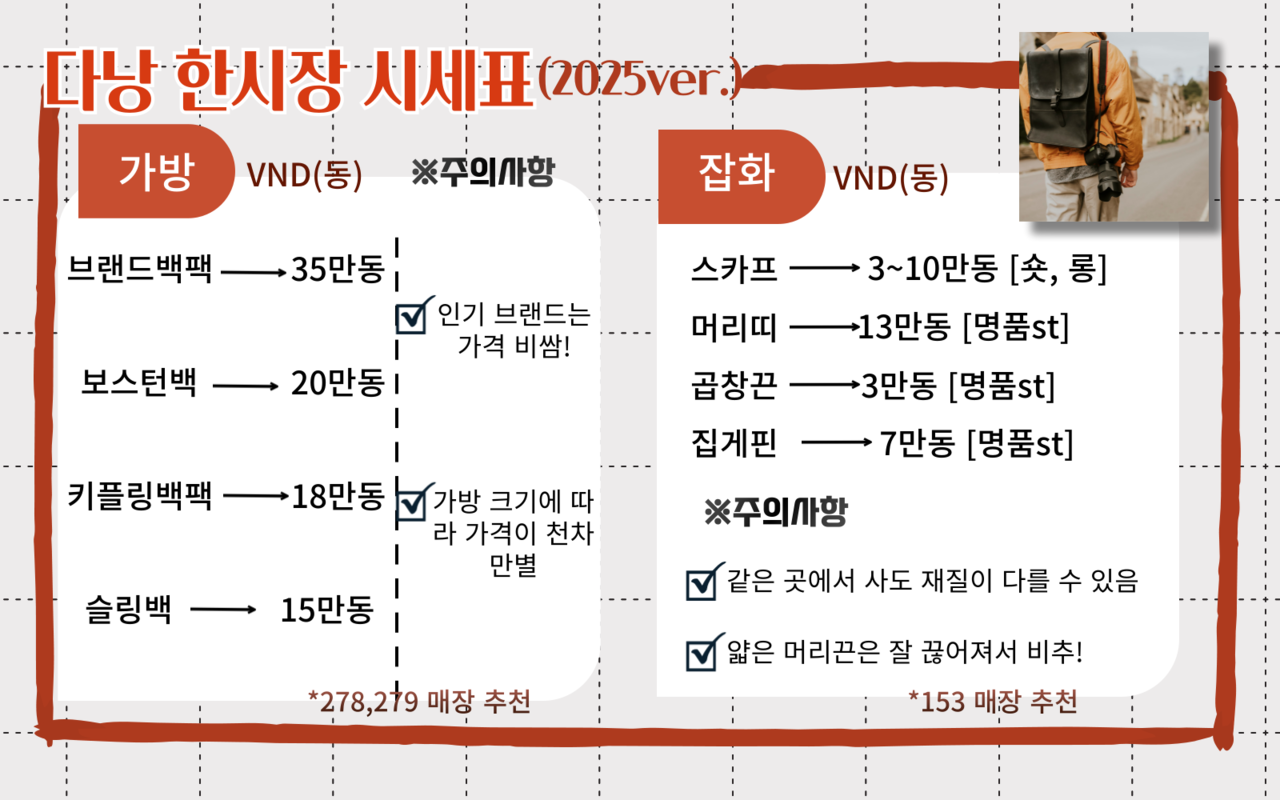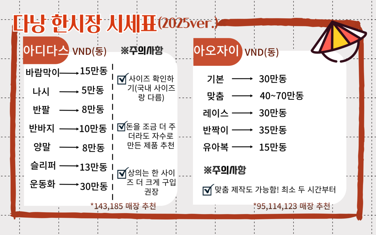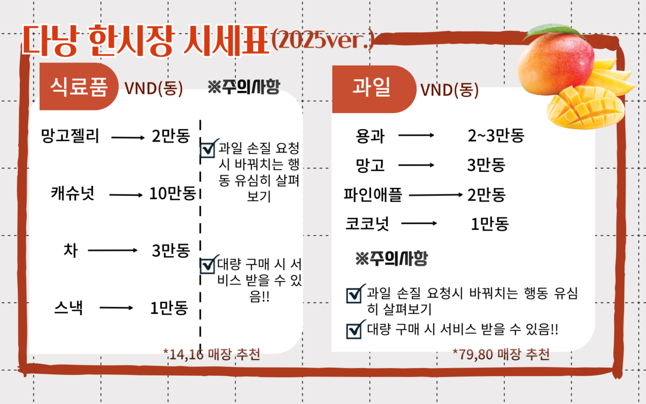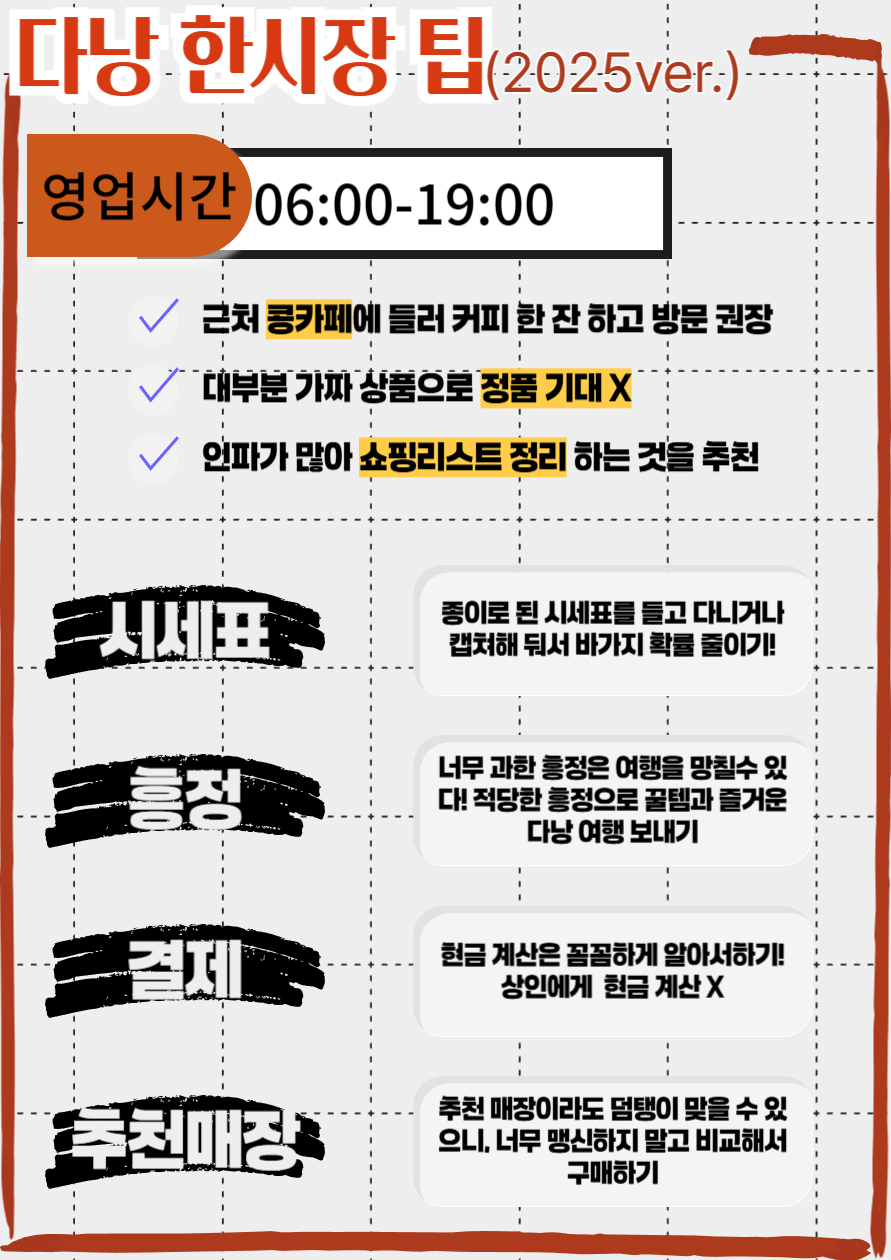 다낭 한시장 시세표는 캡처 또는 출력하여, 터무니없는 바가지 요금에 속지 않고 현명한 소비를 경험해보세요!