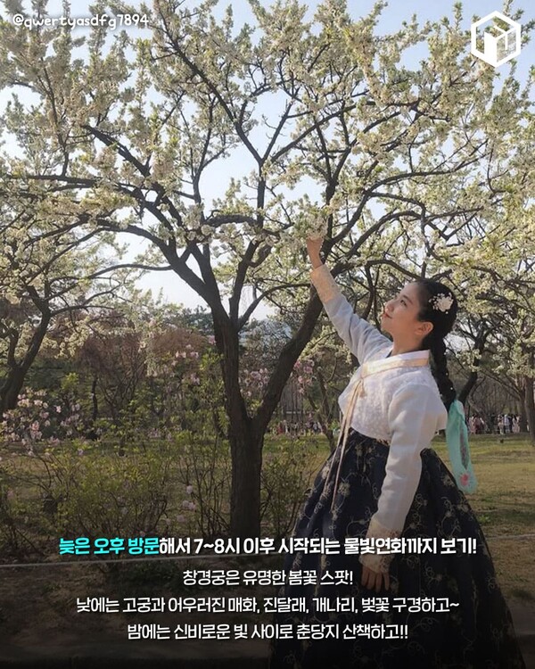따라서 늦은 오후에 방문해 봄꽃이 만발한 창경궁을 둘러본 뒤, 해질 무렵에는 노을 풍경을, 해가 진뒤에는 2025 창경궁 야간개장인 '물빛연화'까지 모두 감상하는 것을 추천합니다.