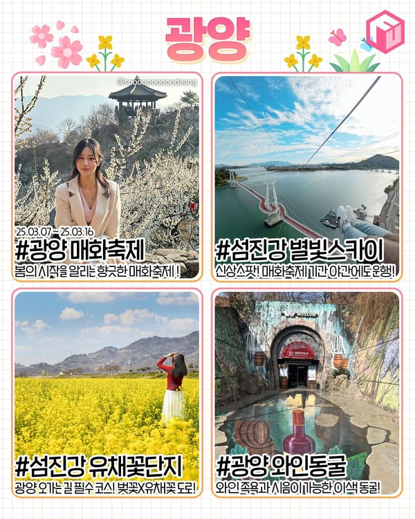 ✅ 광양 매화축제 ✅ 광양 섬진강 별빛스카이 ✅ 광양 섬진강 유채꽃단지 ✅ 광양 와인동굴