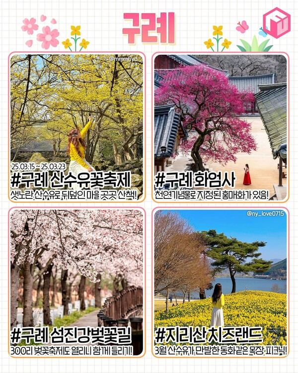 ✅ 구례 산수유마을 ✅ 구례 화엄사 ✅ 구례 섬진강벚꽃길(300리 벚꽃축제) ✅ 구례 지리산 치즈랜드