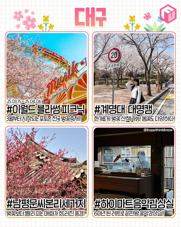 ✅ 이월드 블라썸 피크닉 ✅ 계명대학교 ✅ 남평문씨본리세거지 매화 ✅ 하이마트음악감상실