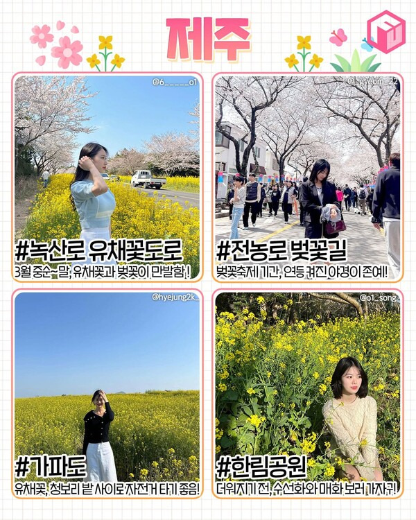 ✅ 녹산로유채꽃도로 ✅ 전농로 벚꽃길 ✅ 가파도 ✅ 한림공원 (수선화 매화)